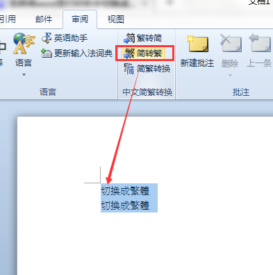 选中需要改成繁体的文字,打开“审阅”菜单栏,再点击【简转繁】即可将简体文字全部转换成繁体字。