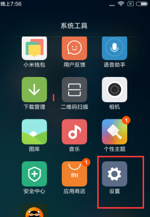 2、然后在系统工具文件夹下找到设置,如下图所示