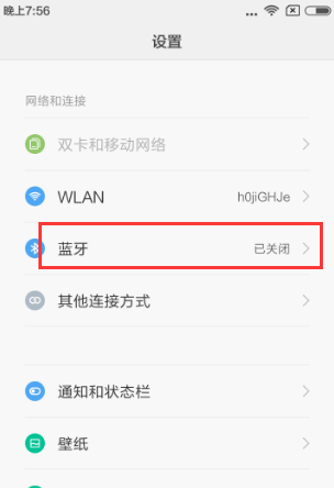 1、打开”设置“,在”设置“中找到”无线连接“选项,进入找到”蓝牙“选项。