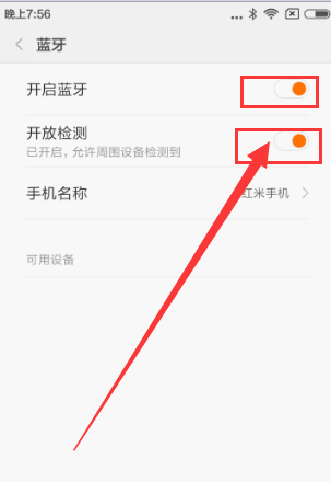 4、点击开启蓝牙,并开启开放检测,如下图所示