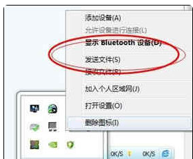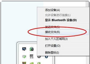 3、在接受文件之前的必要的一步,将蓝牙选项中的接受文件界面打开,否则你是接受不到文件的。打开的方法,右击电脑右下角的蓝牙的图标,选择接收文件。