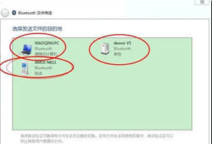 7、随后会弹出“蓝牙设备选择”,此时点击我们刚刚配对成功的设备,再让对方的设备同意接受文件传序,软件即可开始传输给对方。