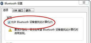 2、将电脑的蓝牙设置里面的允许Bluetooth设备查找的选项勾选。这个选项勾选后别的设备才可以搜索到你的电脑,否则是无法连接的。