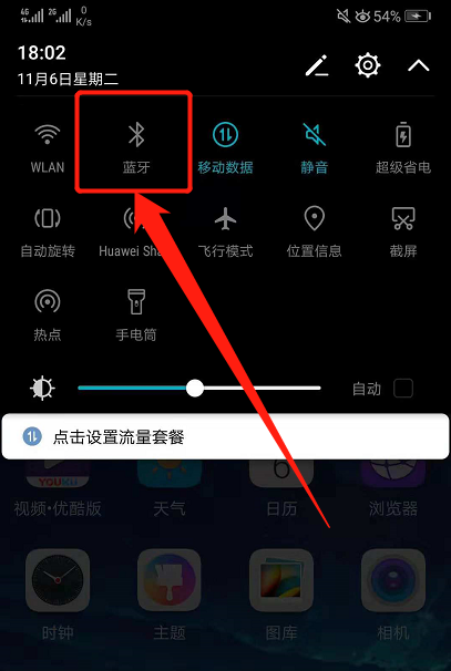 1、在下拉菜单中打开“蓝牙”功能,长按进入蓝牙设置。(或通过打开设置-设备连接-蓝牙,也可进入蓝牙设置)