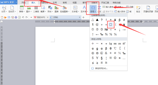 2、然后在符号栏便可以找到现成的打钩样式,点击插入,再关闭即可