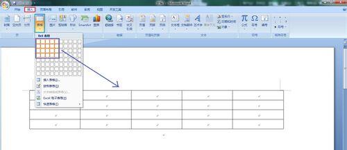 1:打开Word 2007,点击"插入"选择卡中的"表格下拉列表",然后在出现的图示表格中随意滑动来确定要绘制的表格的大小,最后点击以完成单元格的绘制工作。