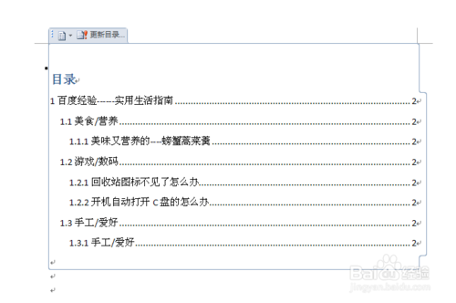 六、修改好后目录后保存,word自动生成的目录修改完成。