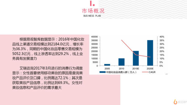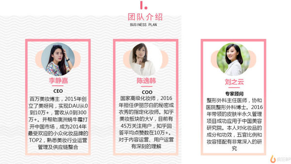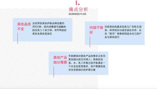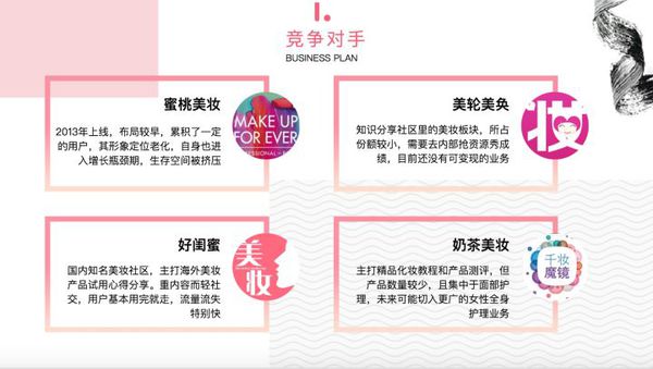 接下来我们就需要针对阅读者(也就是“投资人”)的阅读重点、思维逻辑等,来规划、安排、排版、设计内容。后文会附上一个美妆社区网站的商业计划书案例,辅助说明。
