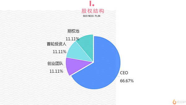 股权结构是公司稳健的基石,直接影响公司的组织结构。写BP时注意:利益结构要合理、贡献也需要正相关;不合理的股权结构,最好在融资前进行合理调整;说明之前几轮融资情况:出资方、金额、出让股权等。