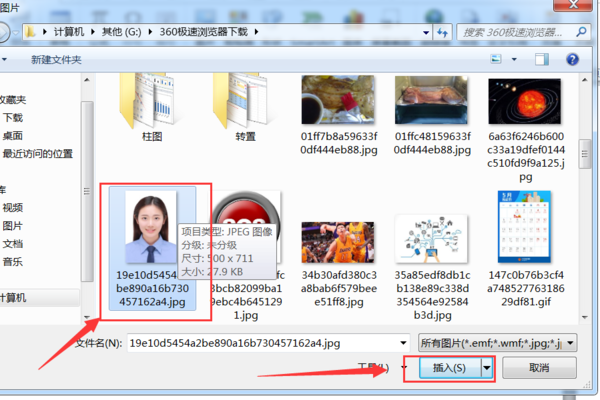 2、在弹出的浏览页面选择需要添加的图片,然后点击下面的“插入”按钮。