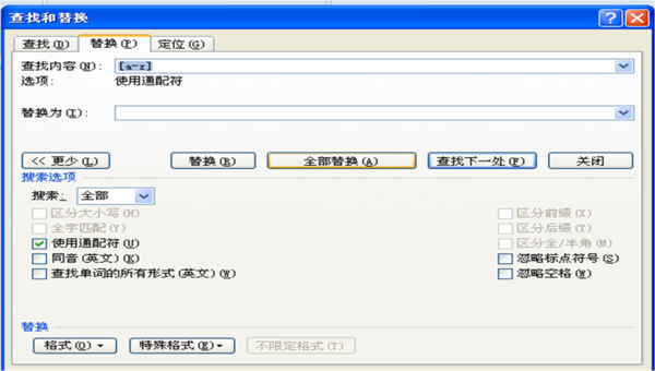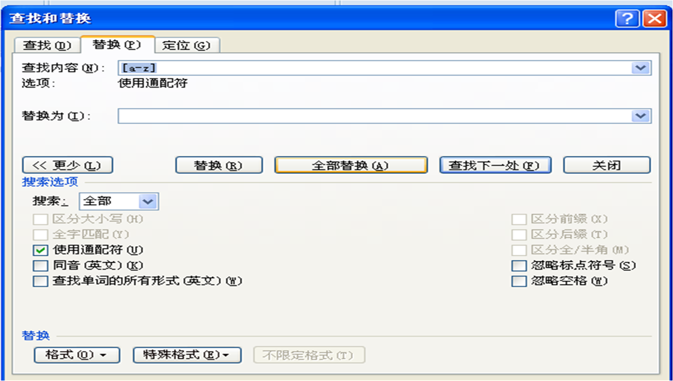 高级选项勾选“使用通配符”,“全部替换”。