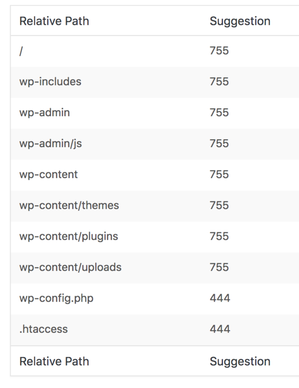 下图是wordpress根目录文件/文件夹权限建议。