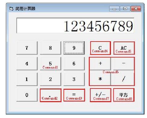 首先创建一个命令按钮,调整其大小(觉得合适就行),名称为Command1,Caption 属性为数字 0 ;然后进行“复制”和“粘贴”,当选择“粘贴”时,出现对话框提示已有一个同名控件,询问是否创建控件组,选择“是”后,即创建了一个名为“Command”的控件组。