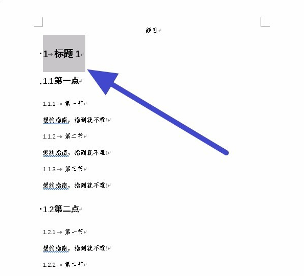 选中一级标题,点击样式里的“标题1”,依次将所有的一级标题进行设置,如下图所示。