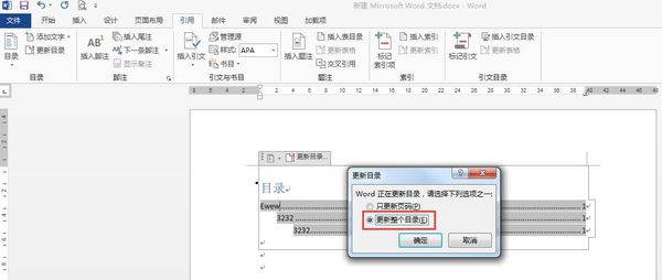 2、点击“更新目录”后会弹出一个选择提示框,这时选择更新整个目录,这样文档中的所有目录都会更新了。