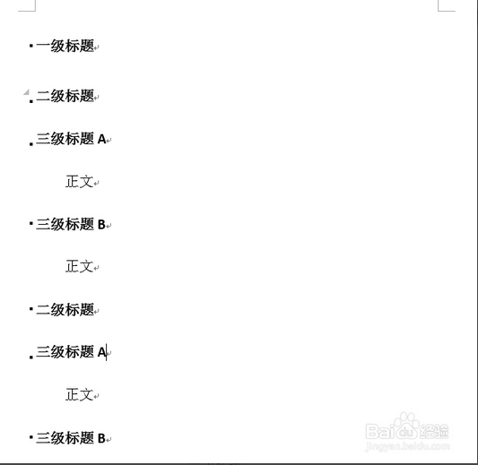 第四步:设置标题二格式的其他标题,参考第二步,设置标题三等其他标题样式,参考第三步。