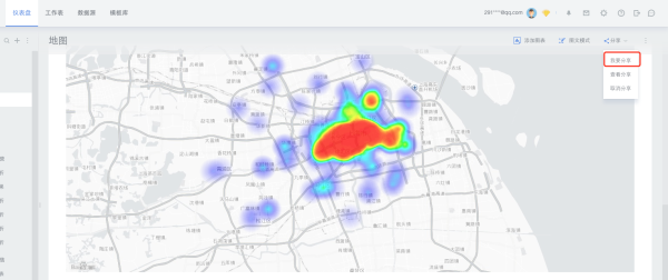 1)上传数据:数据上传后,在工作表右上方点击“添加图表”—“新建图表”—“地图图表”,选择需要的工作数据(可选择多个工作表数据哦);