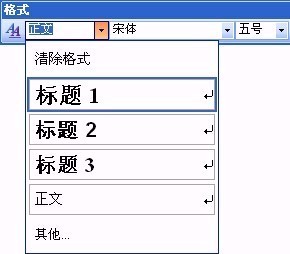 1.选中文章中的所有一级标题,在“格式”工具栏的左端,“样式”列表中单击“标题1”。