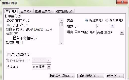 2.执行菜单命令“插入/引用/索引和目录”打开“索引的目录”对话框;