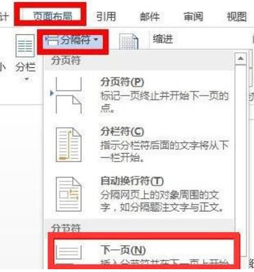 第二步、选择“布局”-“分隔符”-“下一页”,也就是要把前面空出一页。