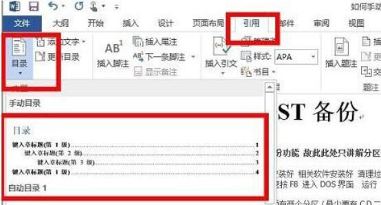5.最后即可引用目录,这样就可以可以自动生成office2003目录了,最终效果如下图: