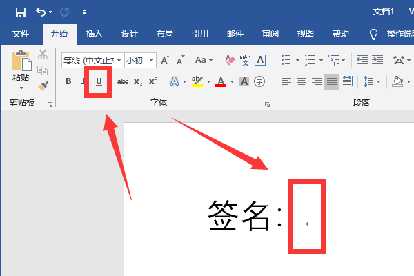 2、找到下划线功能按钮,它的图标是一个“U”字母下方带一条横线,点击这个图标,然后将光标放在需要添加横线的地方: