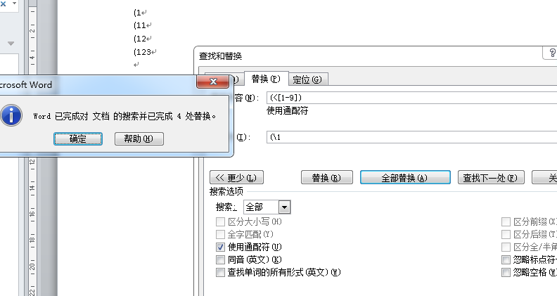 执行替换操作,把(<[1-9])放在查找框,把 (\1放在替换框
