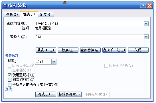 勾选“使用通配符”