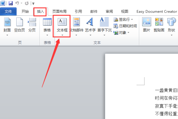 一、打开需要操作的word文档,点击“插入”标签栏,找到“文本框”。