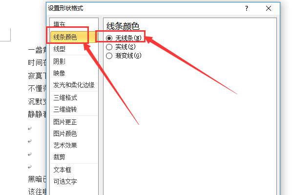 六、点击“线条颜色”,选择“无线条”。