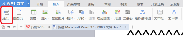 6. 在插入选项中选择分页选项。