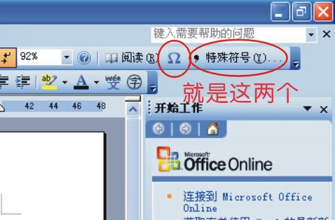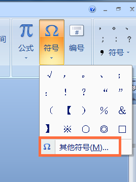工具=》自定义=》(类别)插入=》在命令的框中找到符号(是一个Ω的图标),将它拖到上面按钮条中。