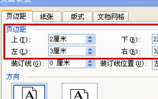 2、打开的对话框,选择”页边距“,上下据选择为“2厘米”,左右均选择为“3厘米”。