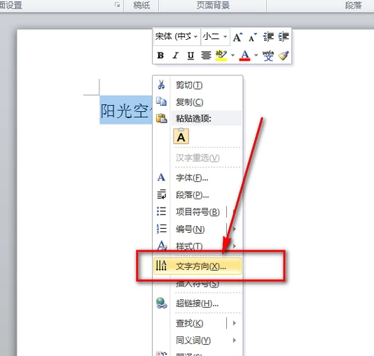 二、接着在所选文字上单击鼠标右键,绕后选择“文字方向”。