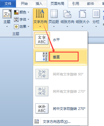 第五步:点开“页面布局”之后,会看见下方有一个“文字方向”选项,鼠标点击,就会看见有下拉的选项。