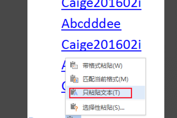 3、在空白处,鼠标右键单击选择粘贴后仅粘贴文本的选项。