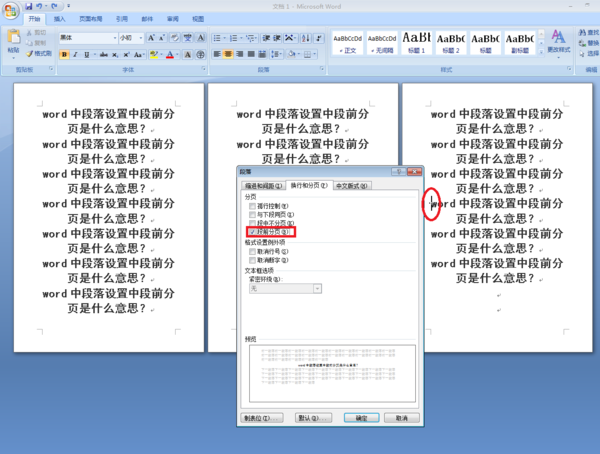word中段落设置中段前分页是什么意思?