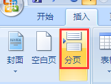 2、单击插入----分页按钮即可,如图所示。