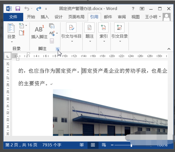在2016版Word中添加脚注的方法: