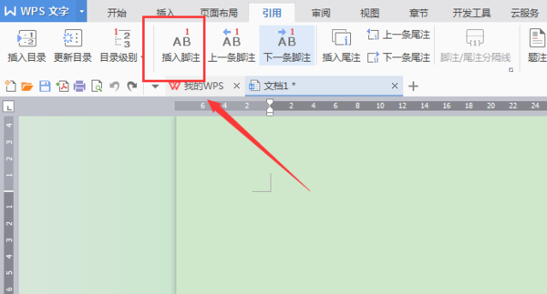 步骤二:将光标放在要插入的文本后面,选择【引用】-【插入脚注】。