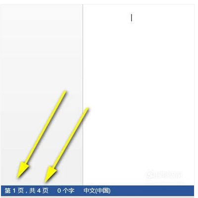 1.打开一份有多页的文档,需要在每一页的页脚设置连续的页码,当前鼠标定位在第一页。