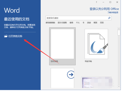 1、鼠标左键双击计算机桌面Word2016程序图标,将其打开运行。在打开的Word2016程序窗口,点击“打开其他文档”,打开需要编辑或者修改的Word文档。