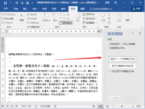 word2016版本里面文档被锁定了怎么解锁,我这个审阅里面的东西都点不了