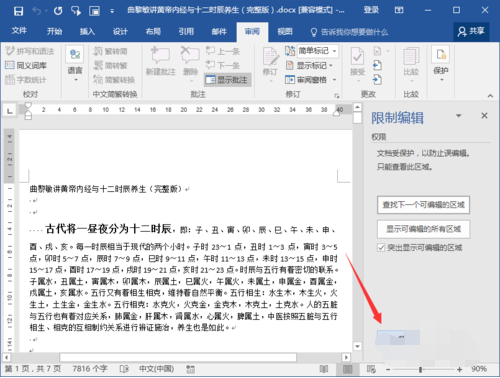 word2016文档被锁定不能编辑,是因为对文档进行了限制编辑的设置。下面我们一起来学习解除编辑限制的方法,具体步骤如下: