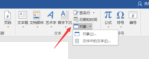 第二步:点击“插入”,找到“对象”,选择“文件中的文字”