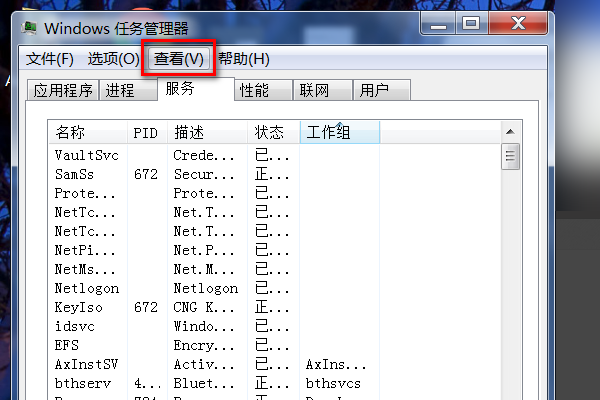3、如没有"PID"这一项,则点击“查看----->选择列”。