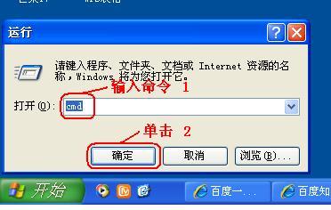 3、在“运行”栏输入“CMD",然后单击“确定”