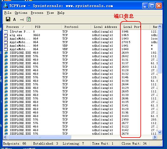 我们还可以借助软件来查看,比如Tcpview、Port Reporter等,以Tcpview为例,介绍下软件查看本地计算机开放端口号的方法:
