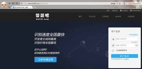 目前我就发现一款自动识别的平台。能够辅助打码。能够快速的将验证码识别;还有就是跟软件开发者进行对接的,给一些小软件进行验证码的自动识别和自动输入。就是这款 答题吧打码平台