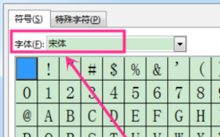 4、接着在符号页面中,字体选择“宋体或者其他中文字体”